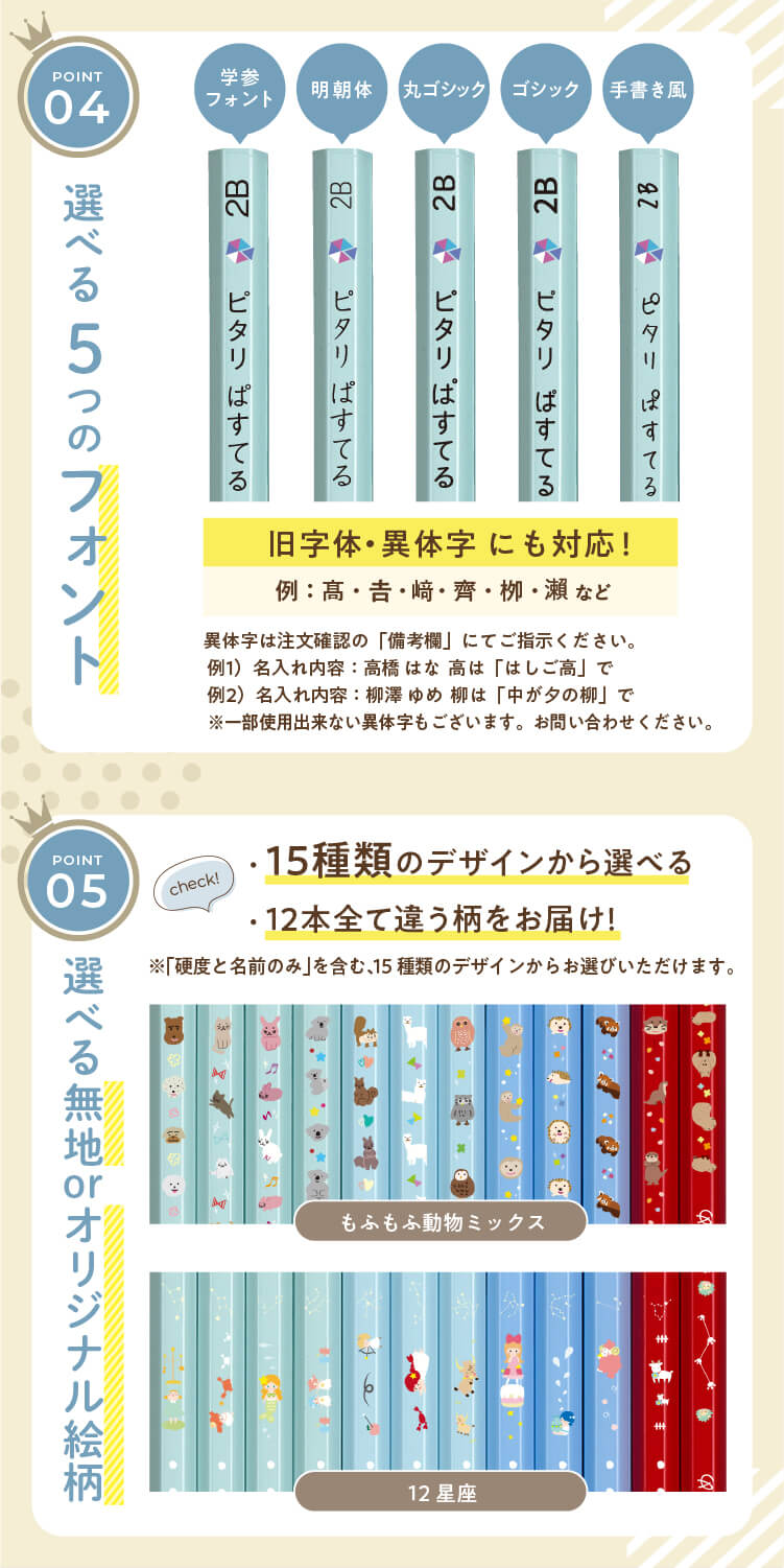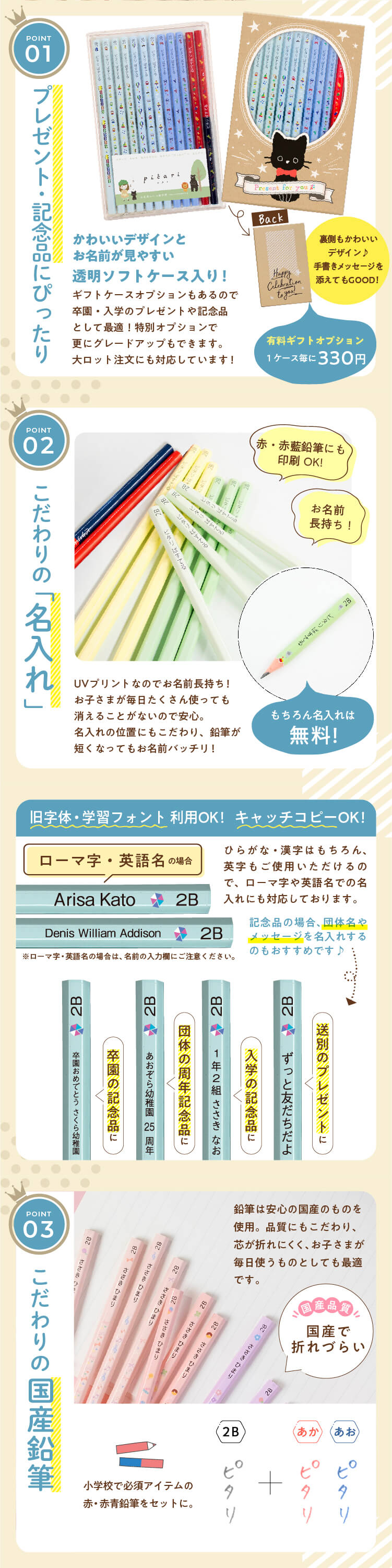 小学校で必需品の鉛筆は小さくてお名前付けが大変。お名前入りの鉛筆ならお名前が消えることもなくとっても便利です。